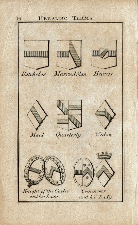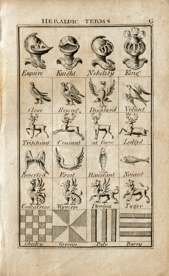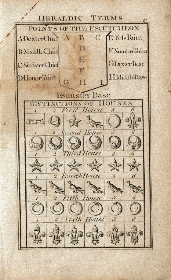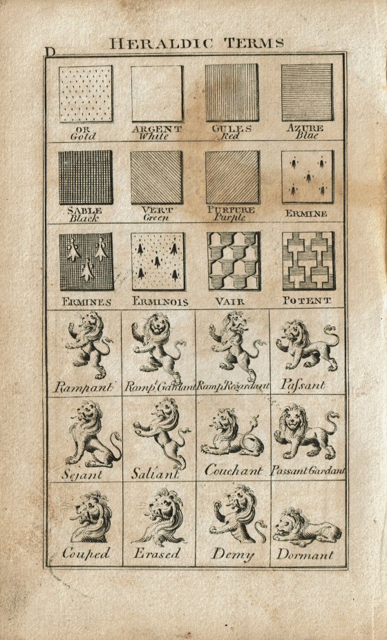 My 1806 edition includes a handy explanation of heraldic terms. I’ve spent many enjoyable hours poring over these pages with a magnifying glass trying to reason out for myself what each symbol meant on a given coat of arms.