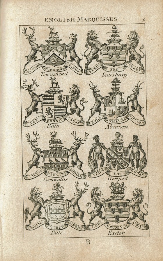 It even includes illustrations of the major peers’ coats of arms, and their mottoes. For example, the Marquis of Downshire’s motto is: