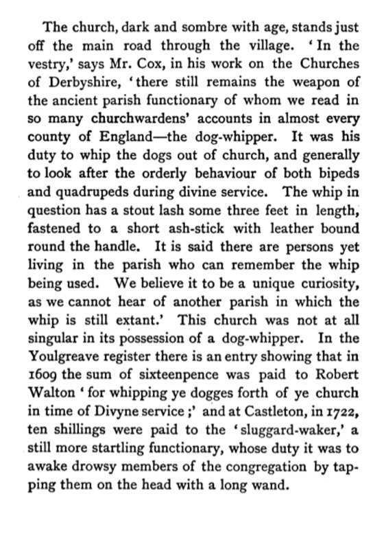 I’m okay with the idea of gently nudging sleeping congregants to keep them awake during Sunday church services; but that whole business about whipping dogs makes me shudder.