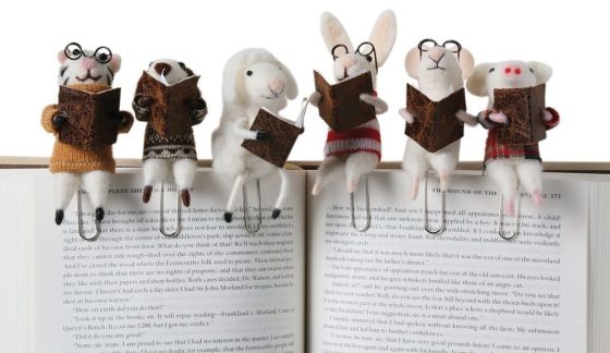 Felted Wool Animal Bookmarks. Choose from six different animals, all avid book readers. Each one is about 3″ high.