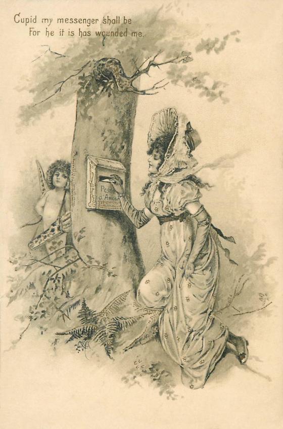 In honor of the day, here are some vintage Valentine greeting cards for you to enjoy and share. The cards feature ladies wearing Regency-inspired costumes. Just click on each image to see a larger version.