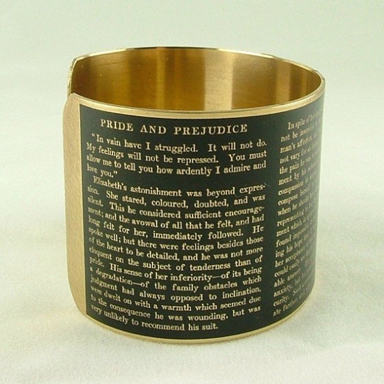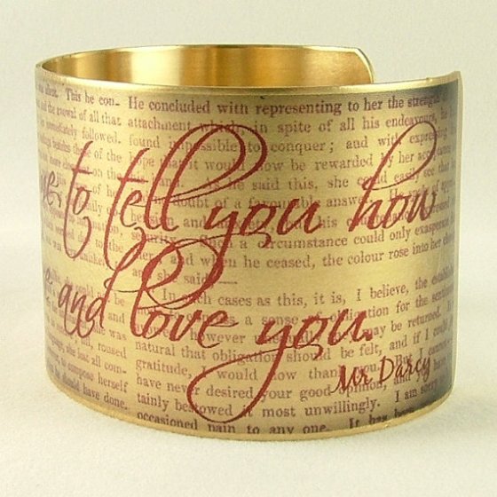 On Etsy I found these cuff-style bracelets designed around Mr. Darcy’s declaration of love to Elizabeth Bennet in which he uttered those famous words:
