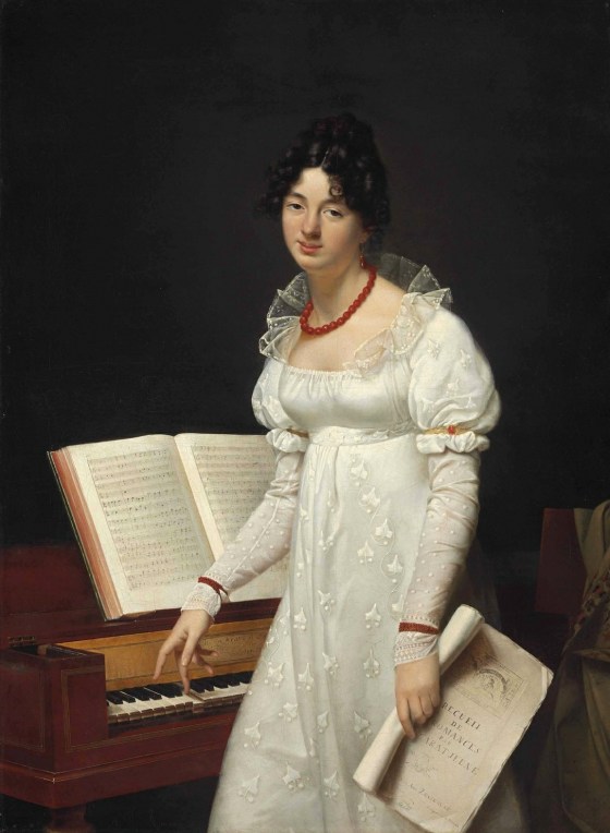 Portrait of a Lady at a Pianoforte Holding a Manuscript, by Adele Romany.