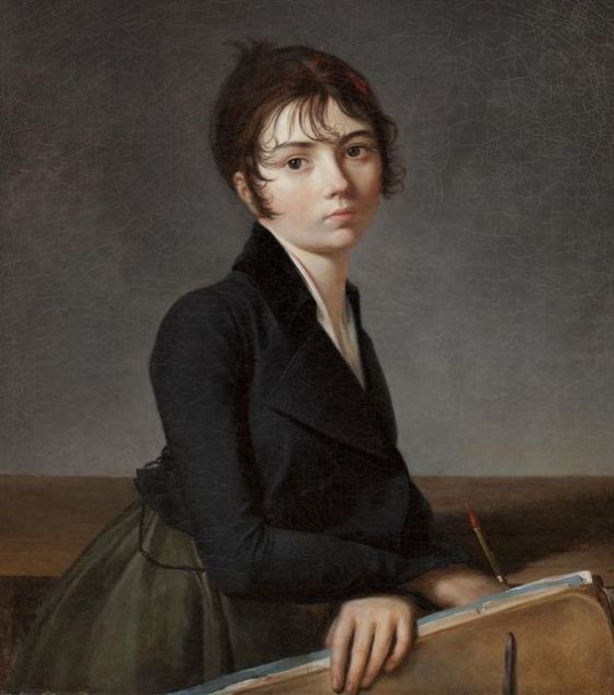It’s a 1799 portrait titled “Girl with Portfolio” by artist Guillaume Guillon-Lethiere.
