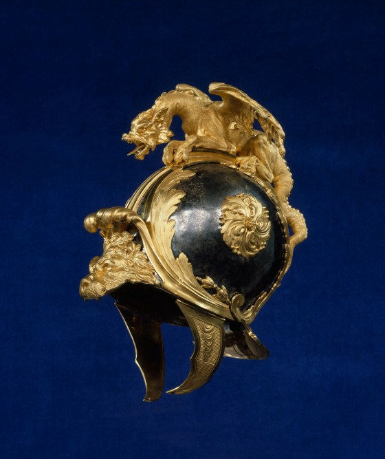 It’s gorgeous! No clunky, clanking armor here; just beautiful design, plenty of gilt, and a deep blue patina that makes every beautiful detail stand out.