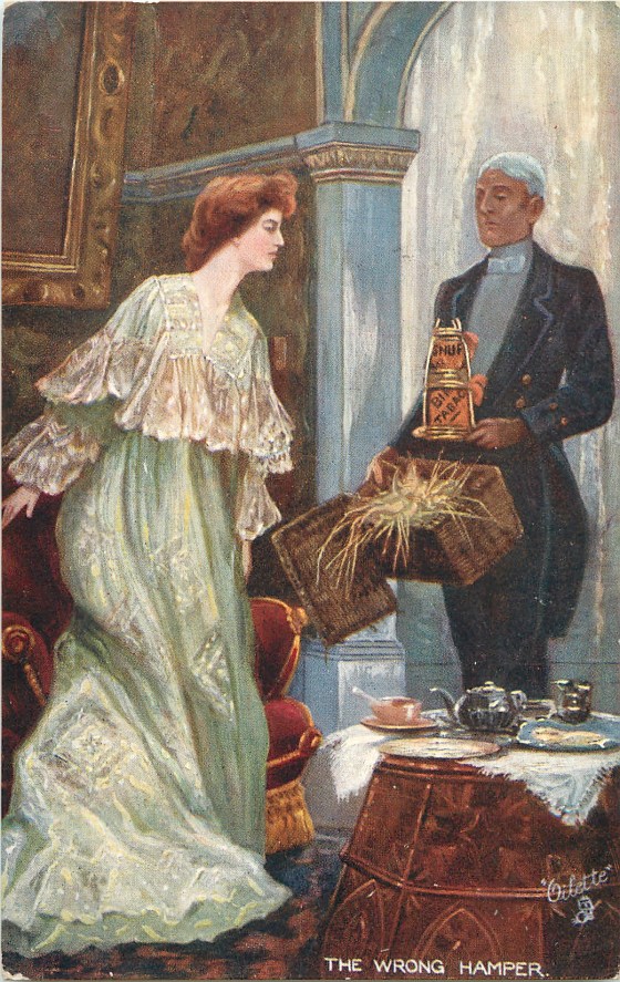 Gift delivery mix-ups aren’t anything new. I found a set of old Tuck & Sons illustrations from the early 1900s that illustrate the point.