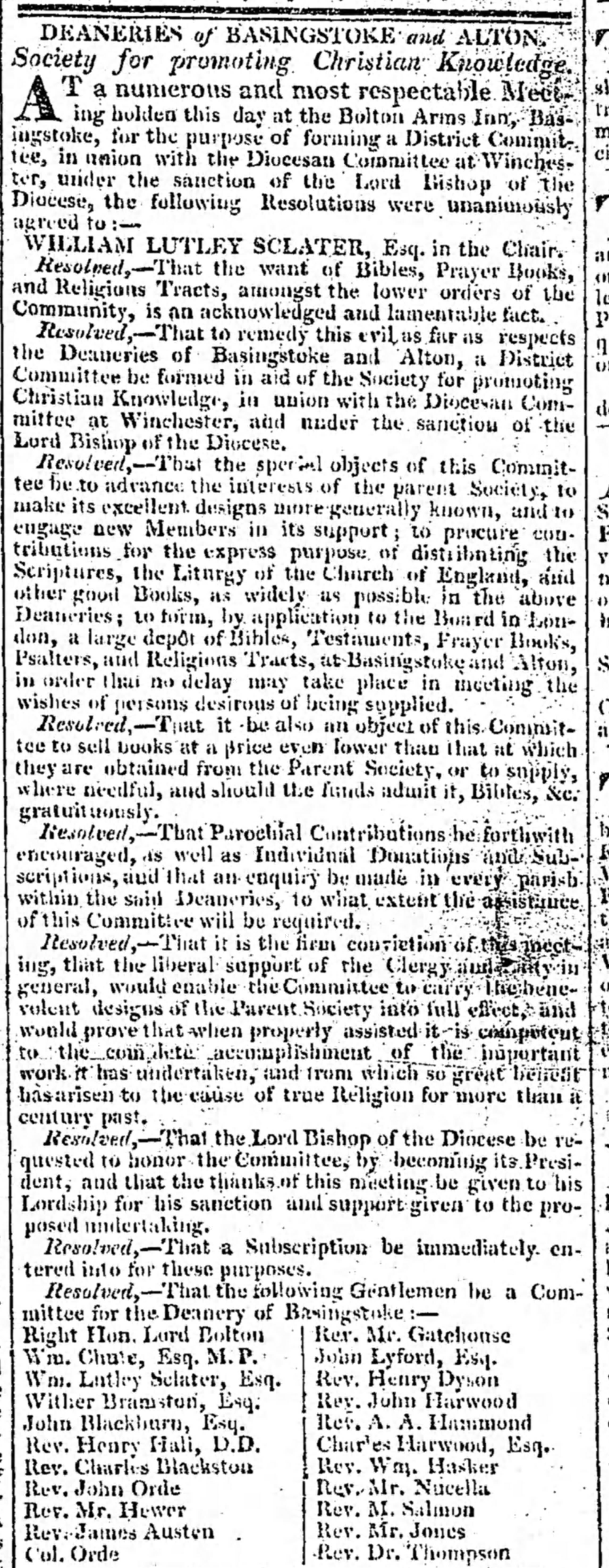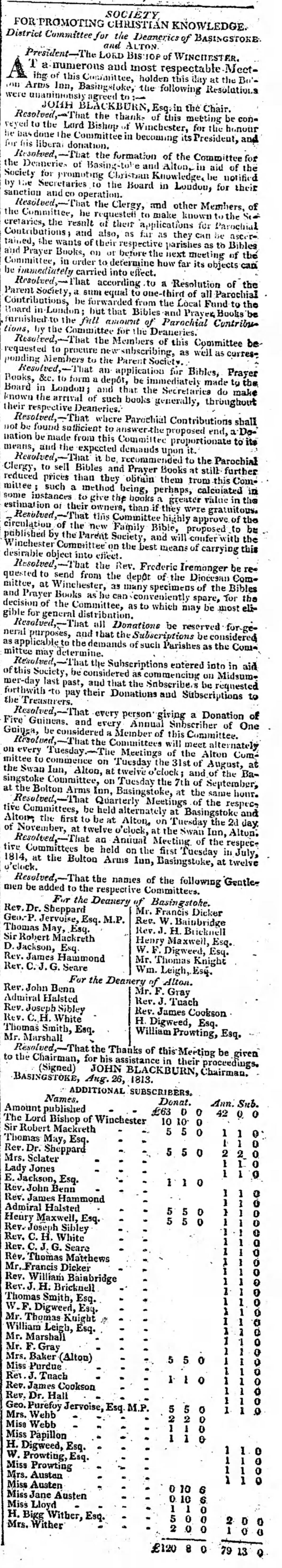 His efforts were documented in a Hampshire newspaper. You can read the entire article by clicking here, but here’s an excerpt listing James as a member of the Basingstoke committee: