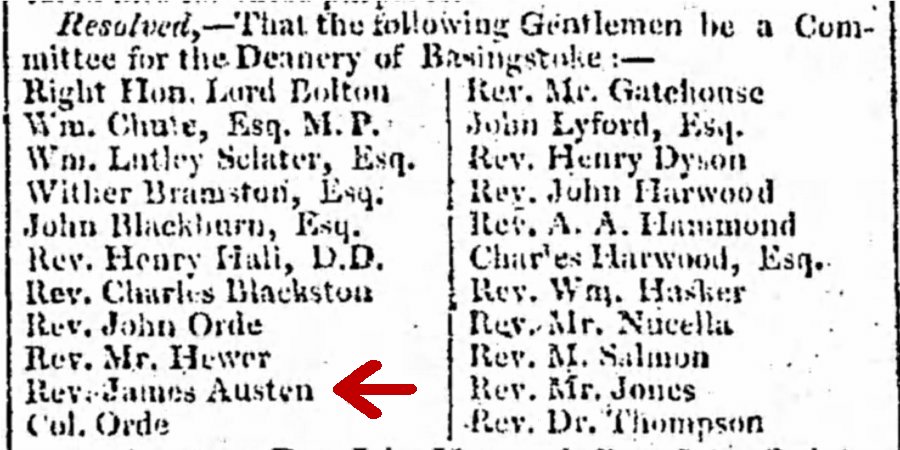 Another brother, James, was the curate of Steventon and Deane—both parishes in the Deanery of Basingstoke. James was active in the community and was part of an effort to make Bibles, prayer books, and religious tracts available to more people in the area.